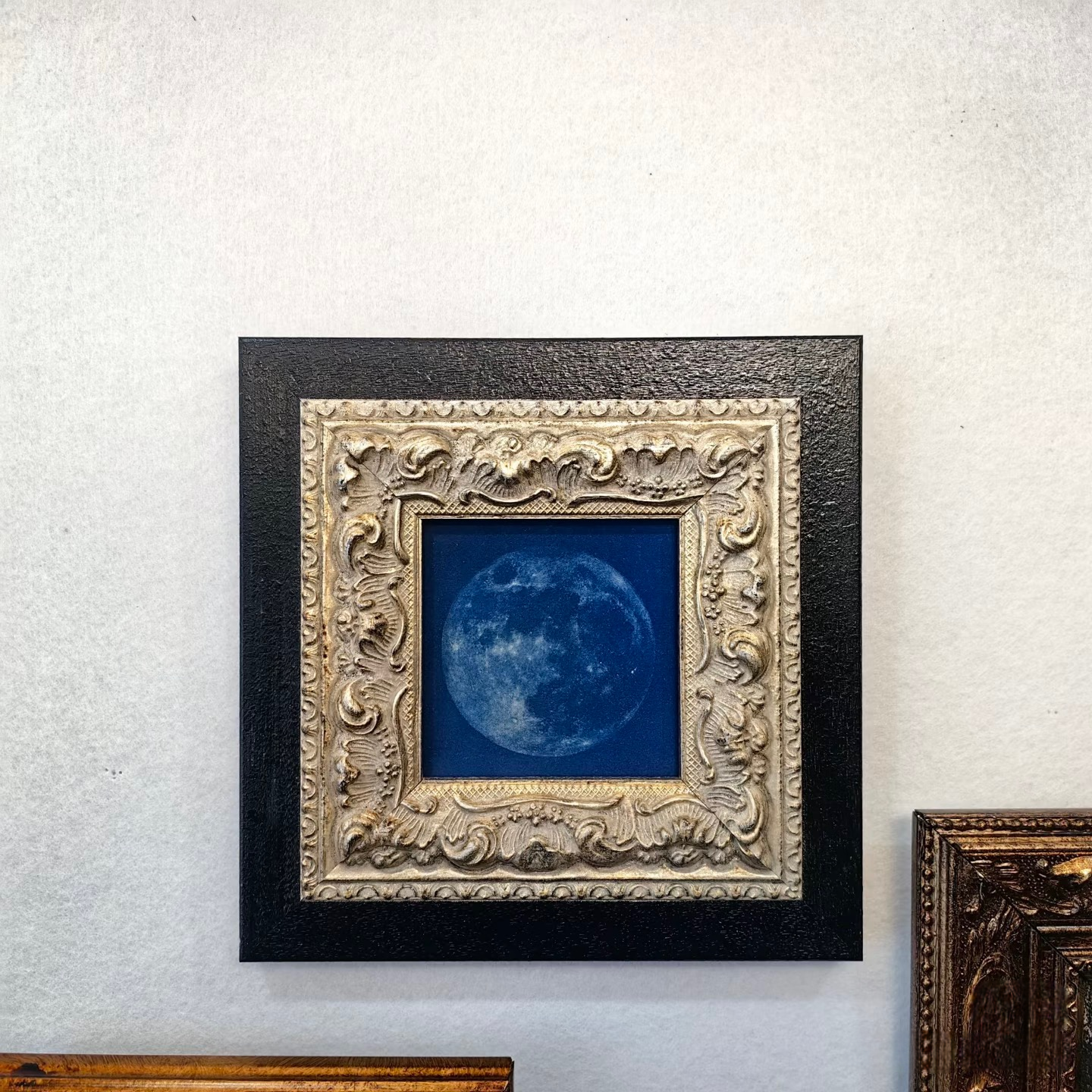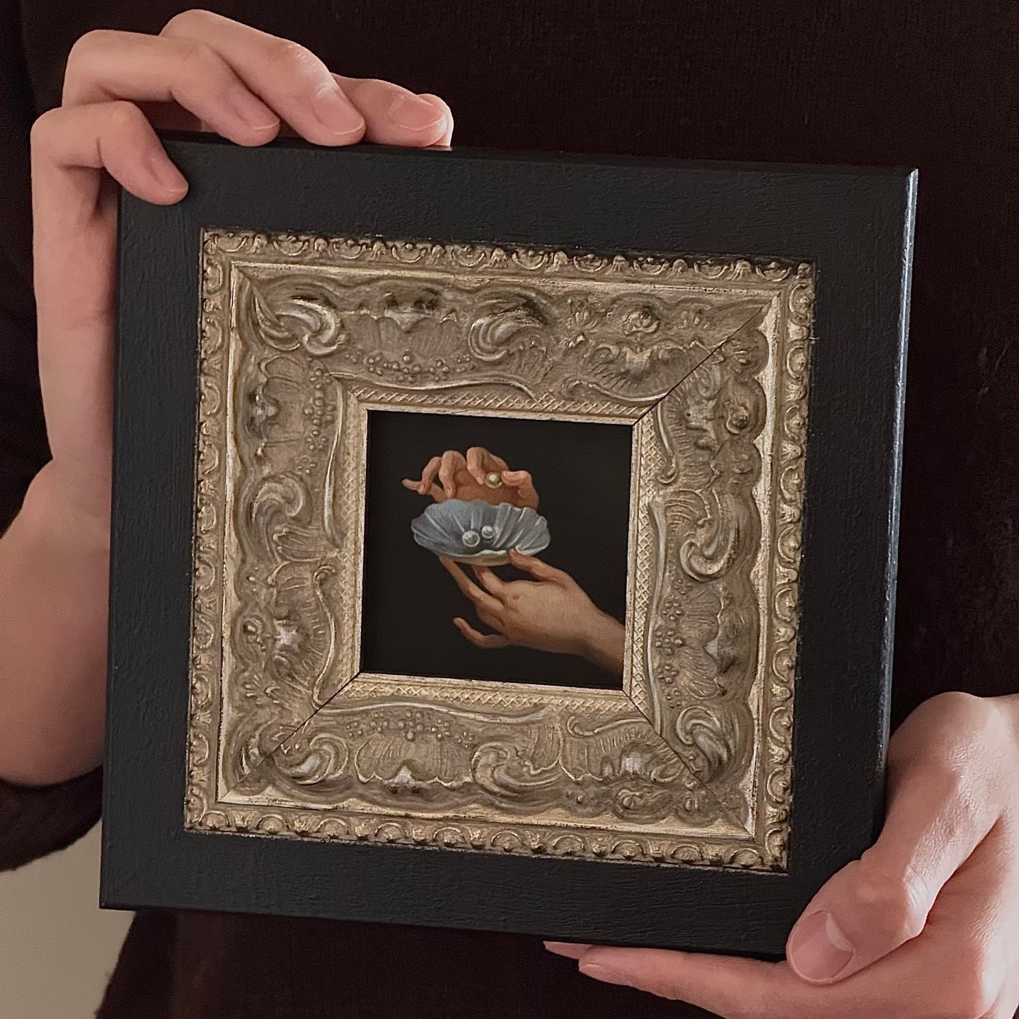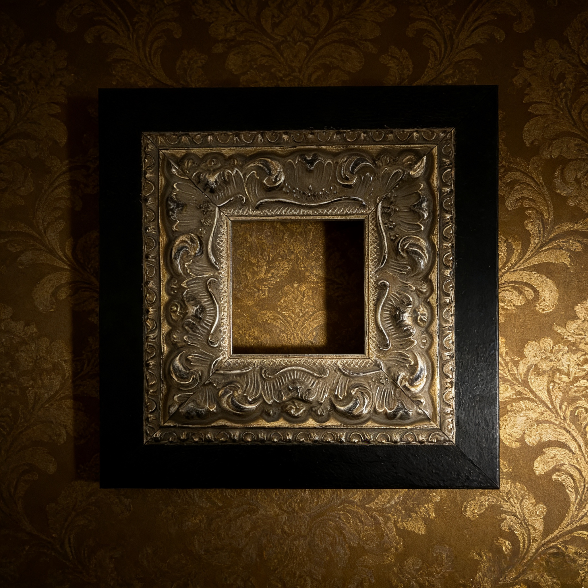 This Victorian Silver Carved Wood Frame features a striking black solid wood outer edge, complemented by an intricately detailed silver floral border. The frame's vintage design is perfect for showcasing your favorite artwork or photographs, adding a touch of gothic elegance to any room. With its acrylic front and sturdy backing, this frame is both functional and stylish, making it an ideal addition to your gothic home decor.